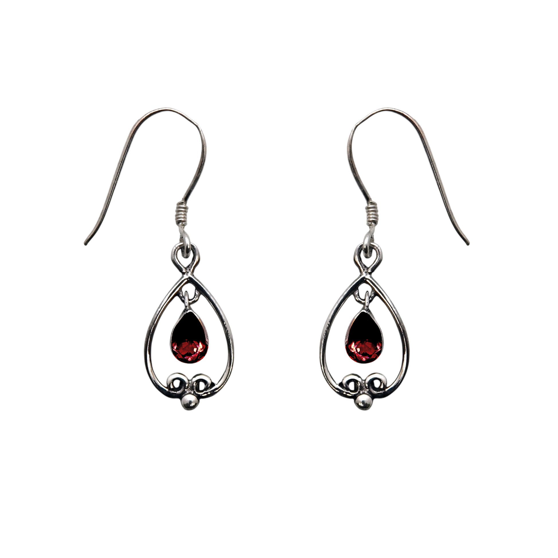 (247NGA) Sterling Silver Garnet pear shape Earrings