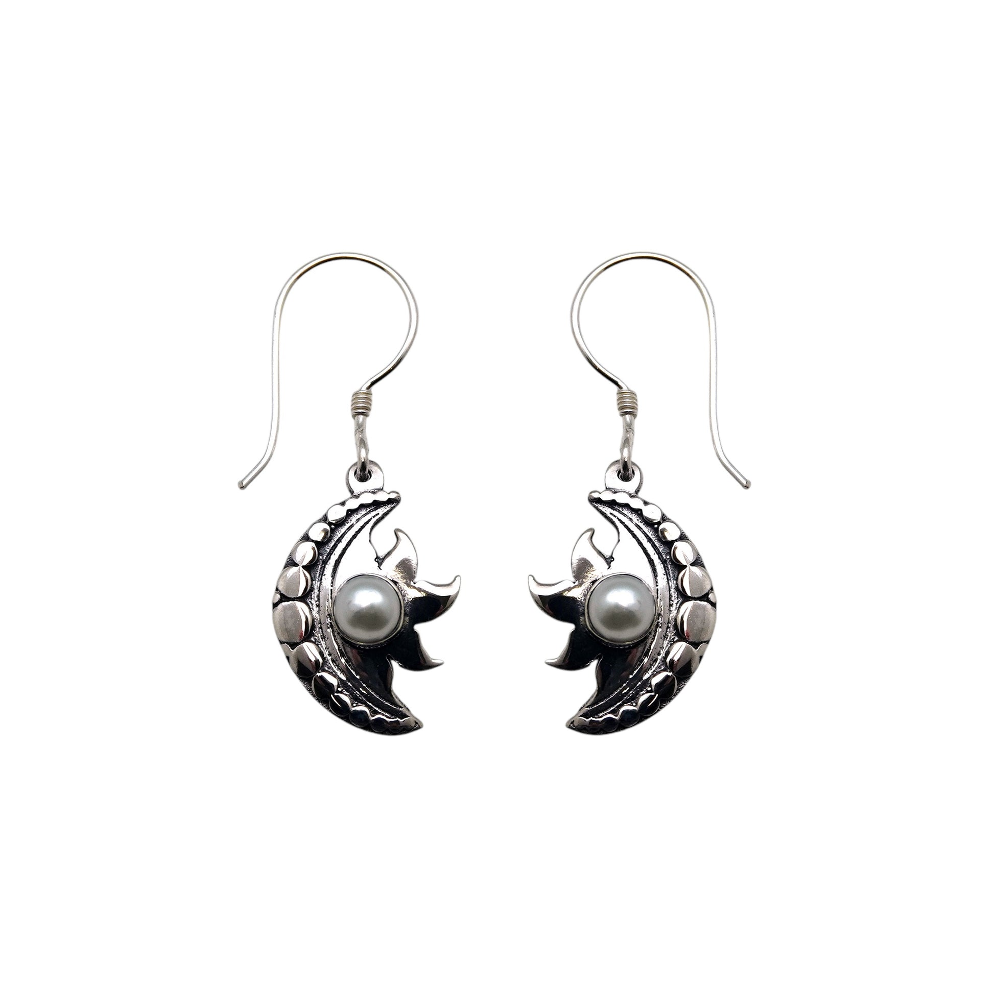 Similar in shape and size to its sibling design (303C), this celestially inspired earring features the master craftsmanship of our Balinese artisans, employing disc shaped granulation in sizes descending from 3 to less than 1mm. Shown here in freshwater pearl.