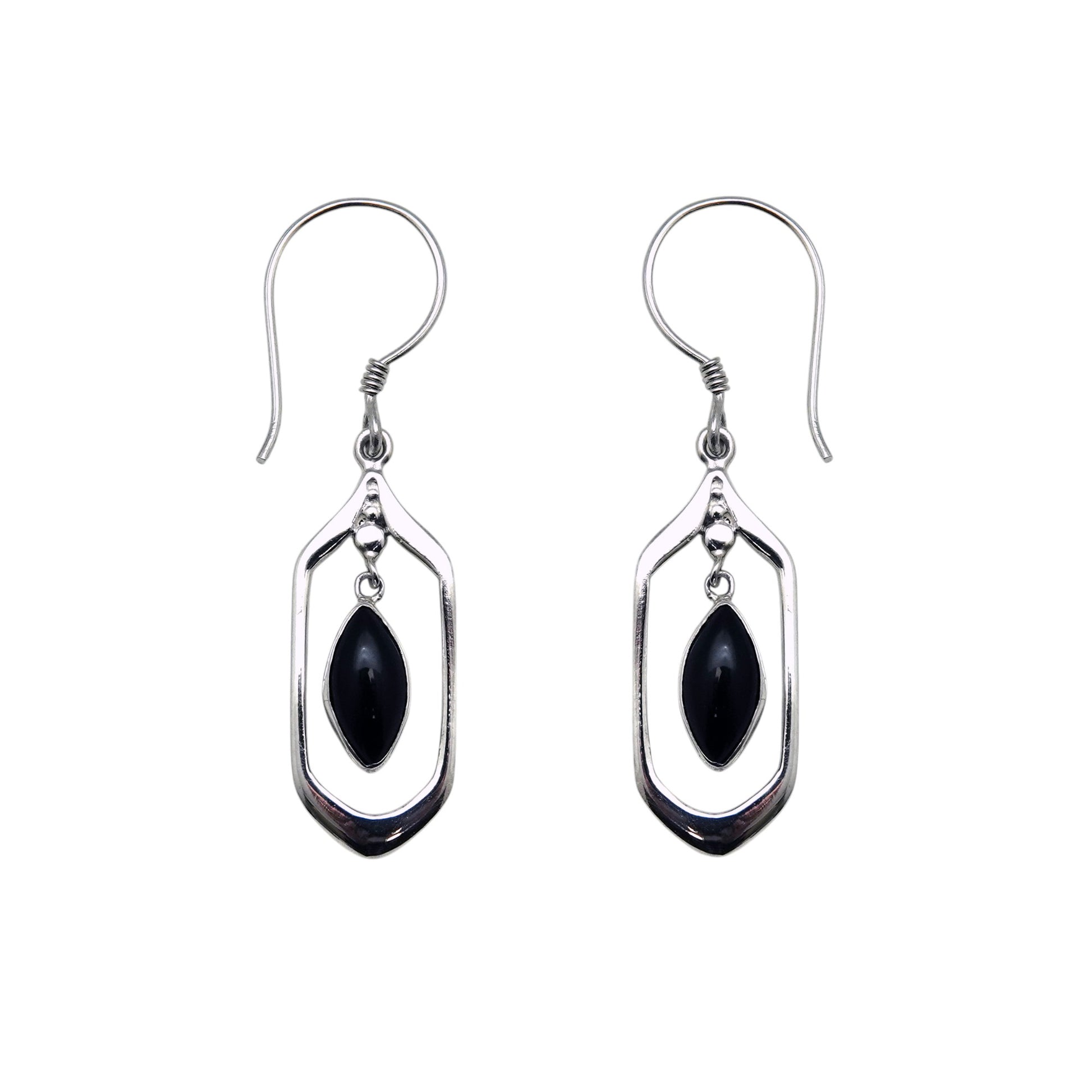 This elongated hexagonal design features a lovely 5x10mm marquise gemstone. Seen here is a black onyx cabochon, This design will be available only in limited availabilities.