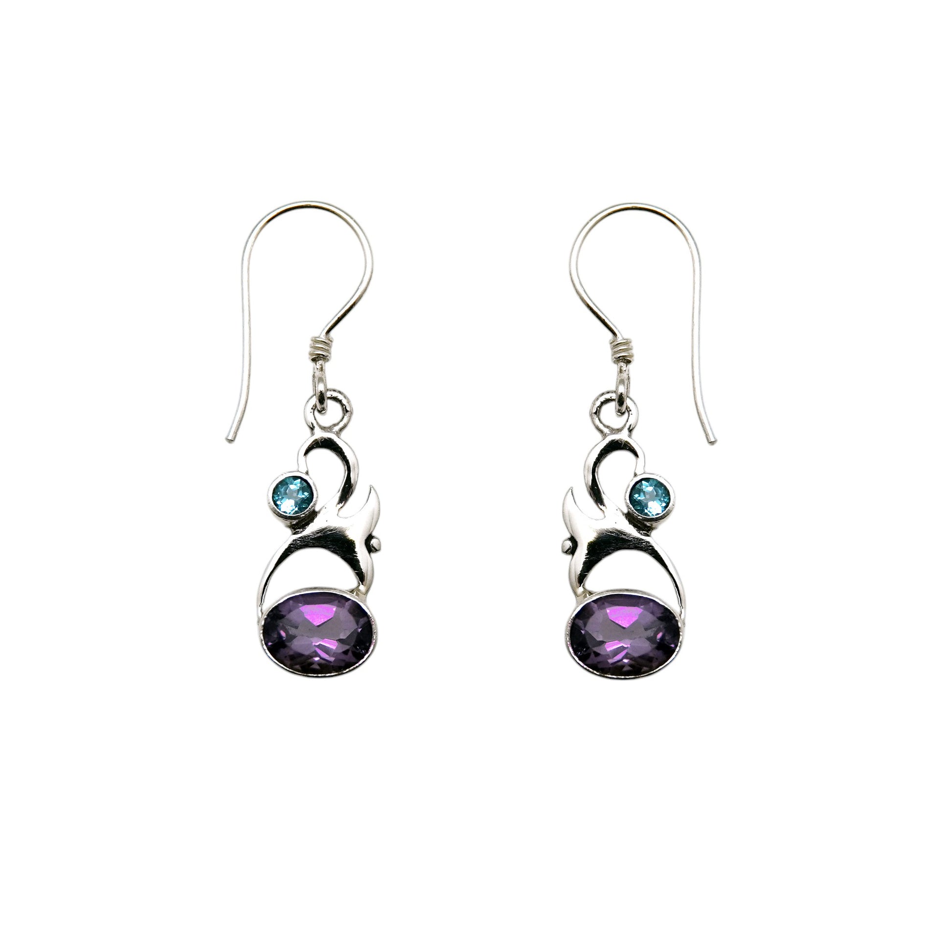 Spring is in the air, reflected in this new design with floral highlights, shown here in amethyst accented with Swiss blue topaz