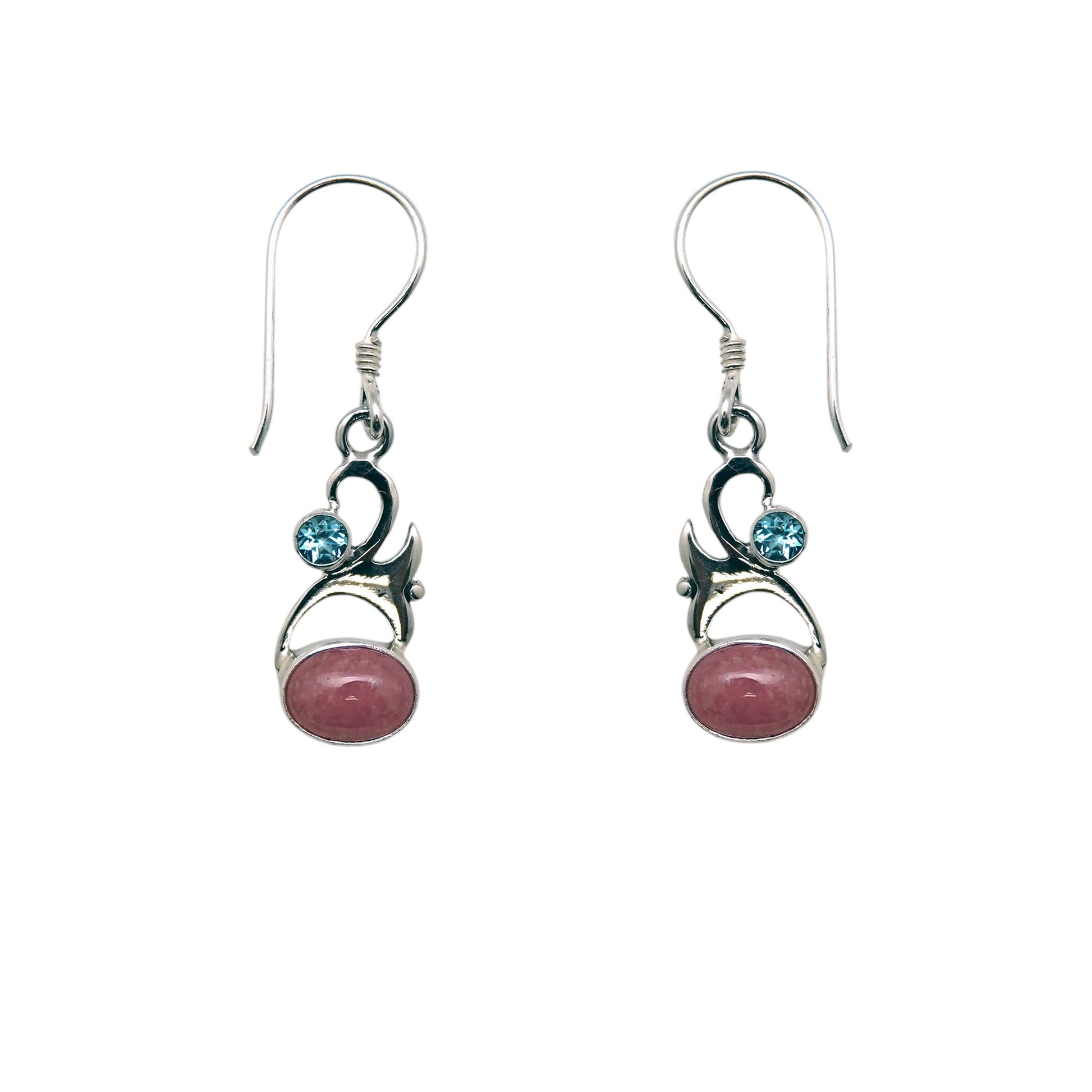 Spring is in the air, reflected in this new design with floral highlights, shown here in rhodochrosite accented with Swiss blue topaz