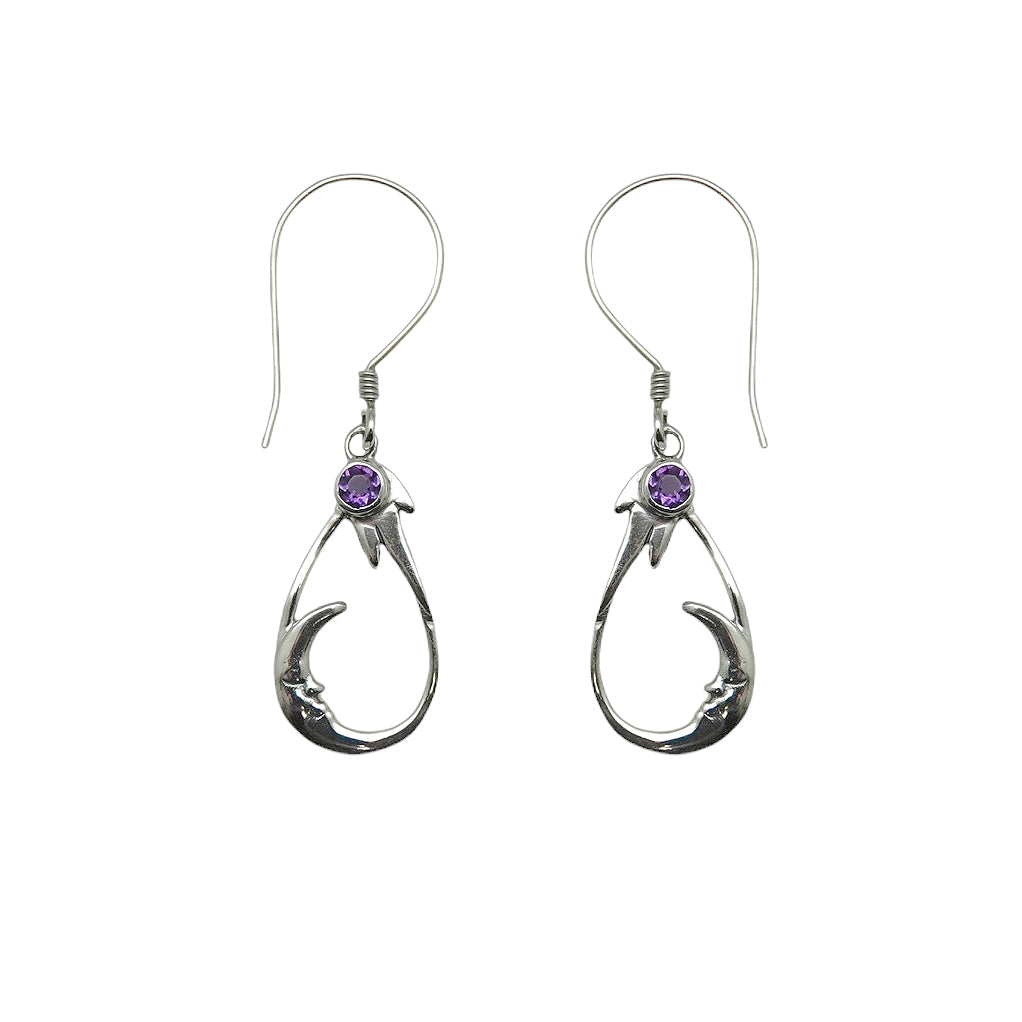 Comet over a crescent moon, or perhaps one sees a shooting star. Whatever it conjures up, this latest addition to our celestial collection features a faceted amethyst spearheading a flash of energy as it crosses the astral dome above. Nothing like lounging on a remote hillside beneath a crystal clear night sky, gazing at the kinetic splendor of our universe. Featured here in the popular teardrop shape.