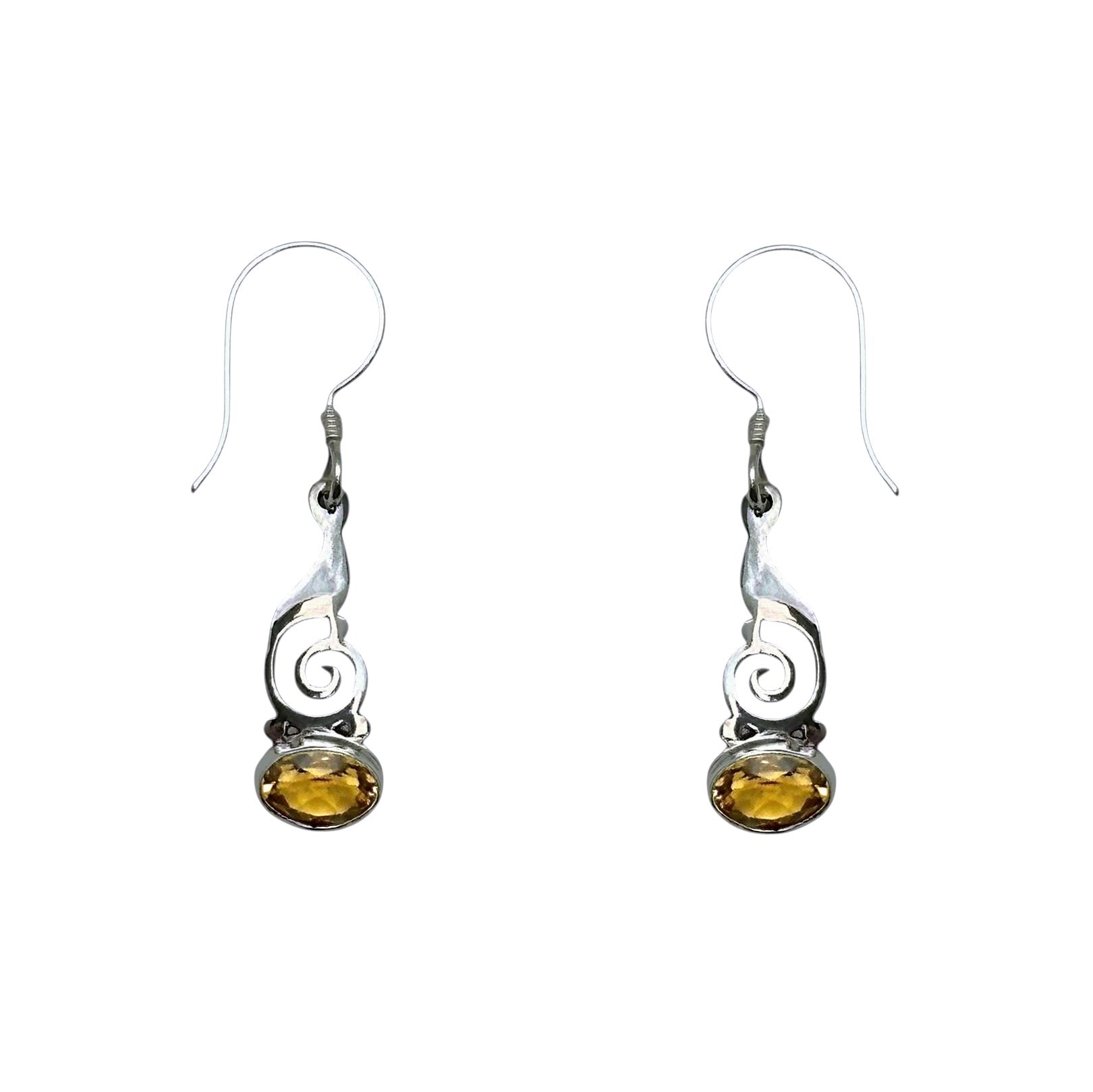 Sterling Silver Spiral dangle Earrings set with citrine. Citrine is the November Birthstone.