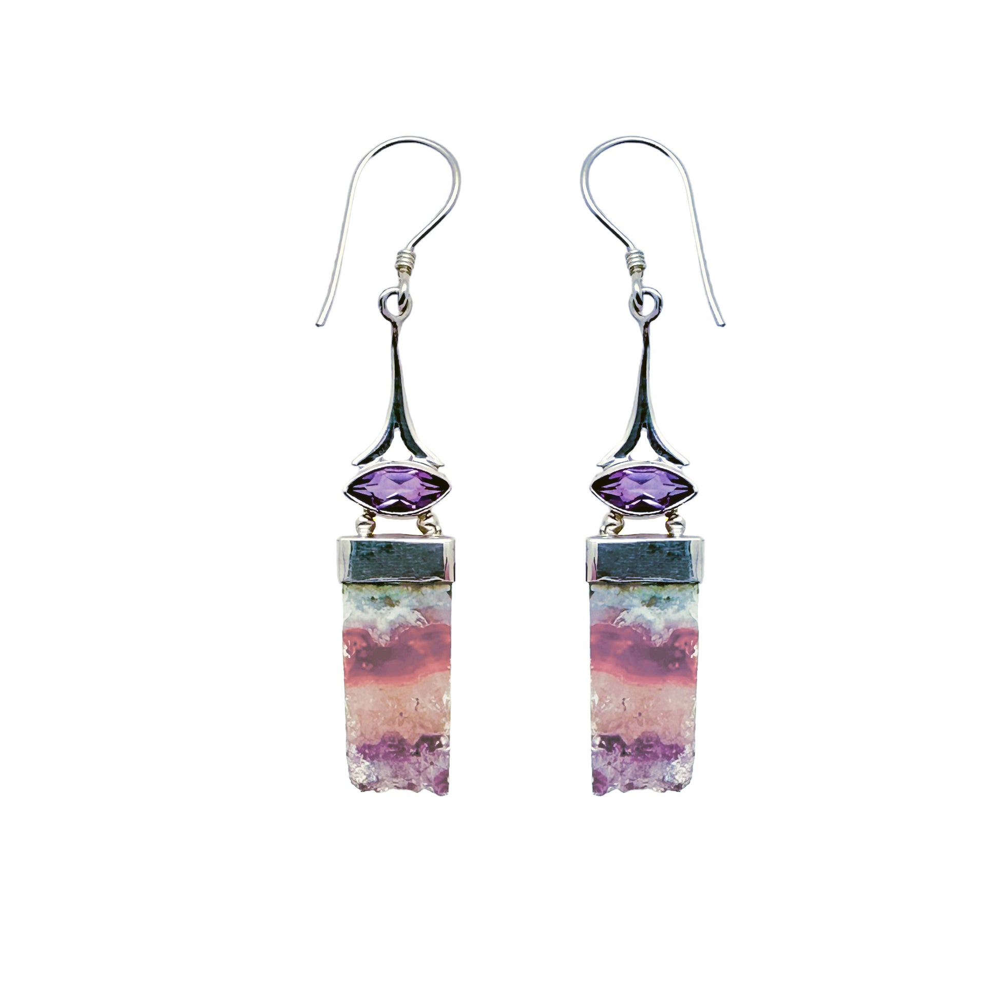 (365BAMCR) Amethyst and Uruguayan Crystal Earrings