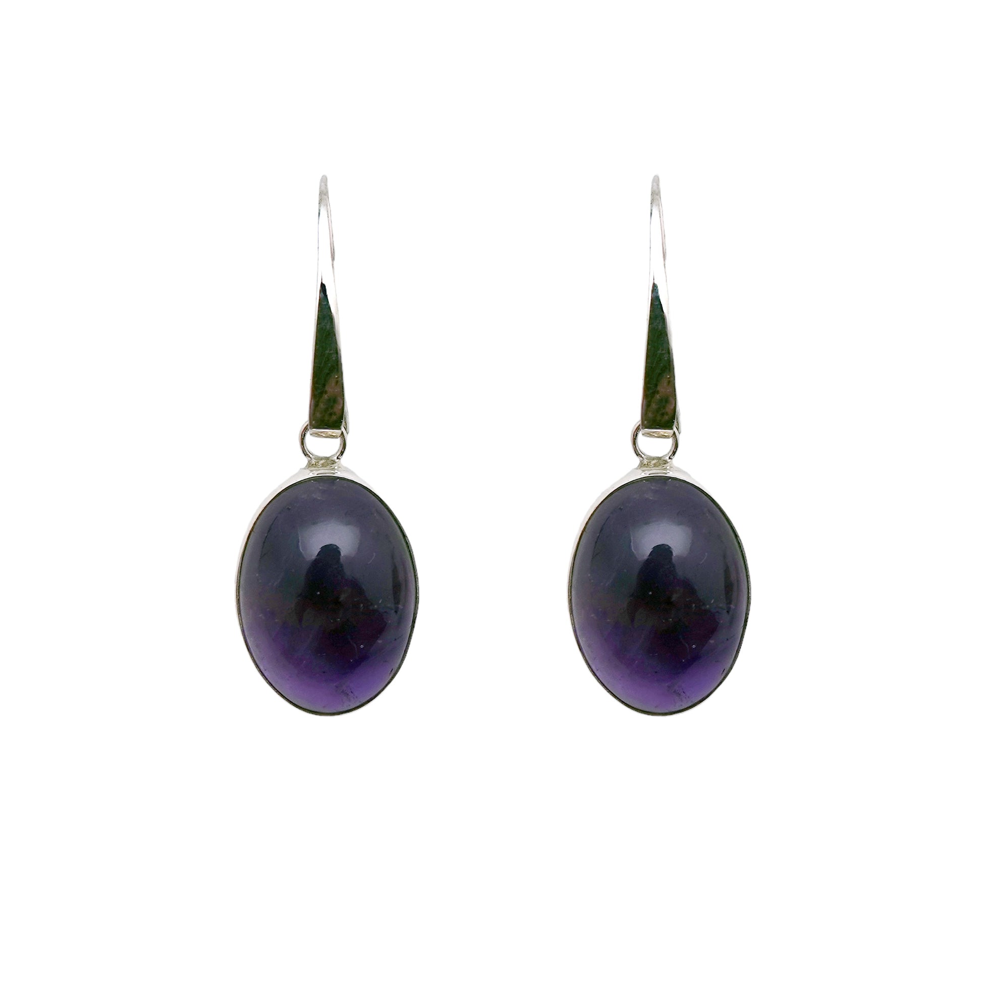 (372BAM) Large Amethyst cabochon dangle Earrings