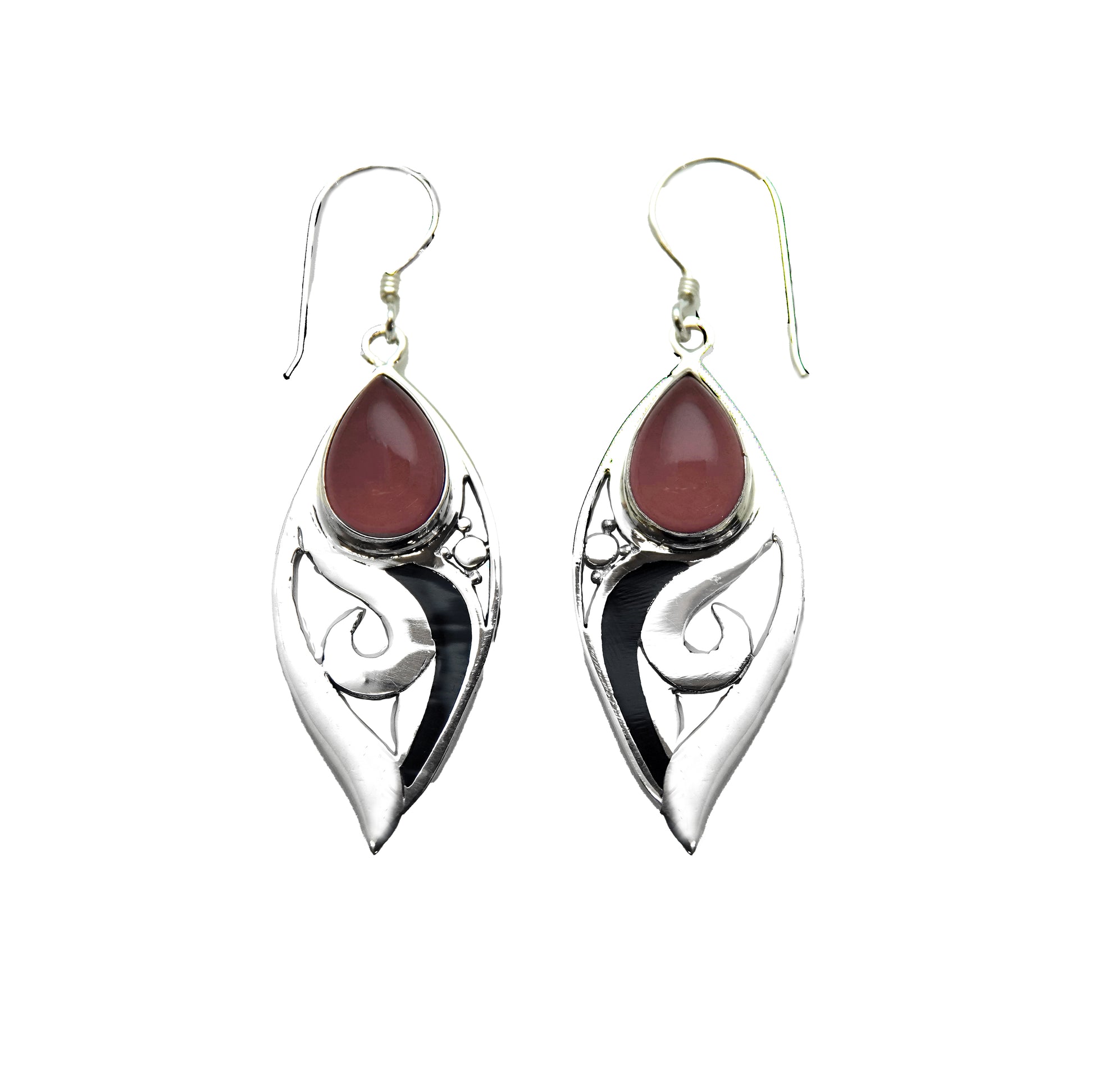 (379BCADK) Tear Drop Carnelian and dark Resin inlay sterling earrings