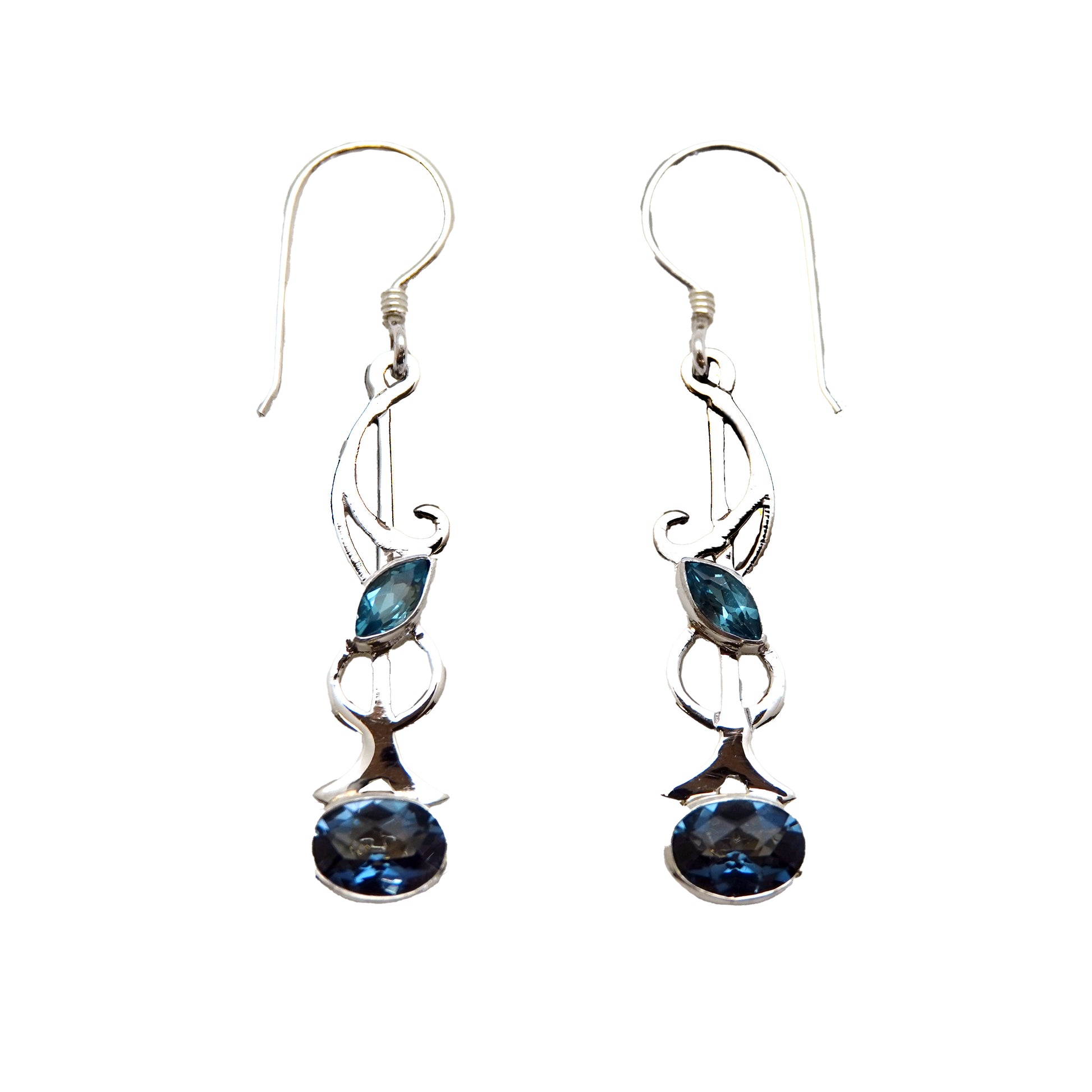 (382BBTBQ) Silver earring in blue quartz with blue topaz.