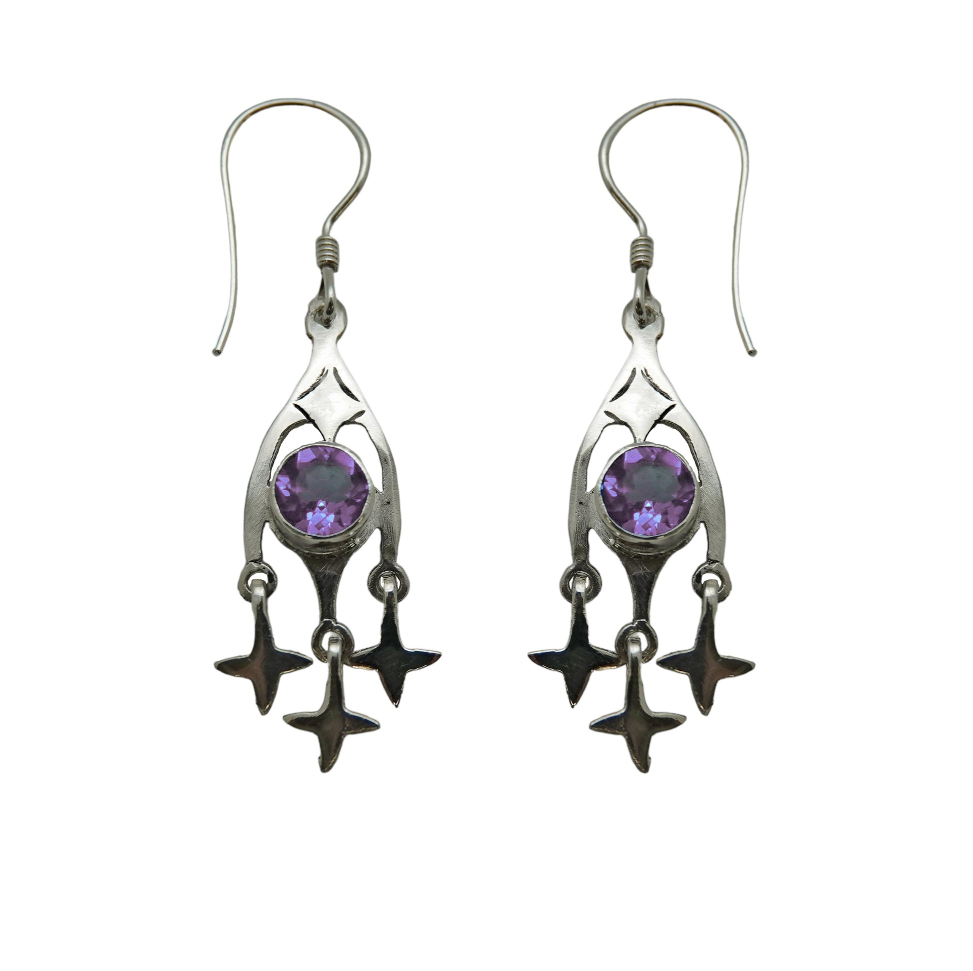 A little taste of heaven in this celestial earring design, with stars swaying to and fro beneath a 1 carat amethyst orb measuring 6mm. Big enough to be noticed but so lightweight you'll hardly know you have them on. Featured here in natural faceted amethyst..