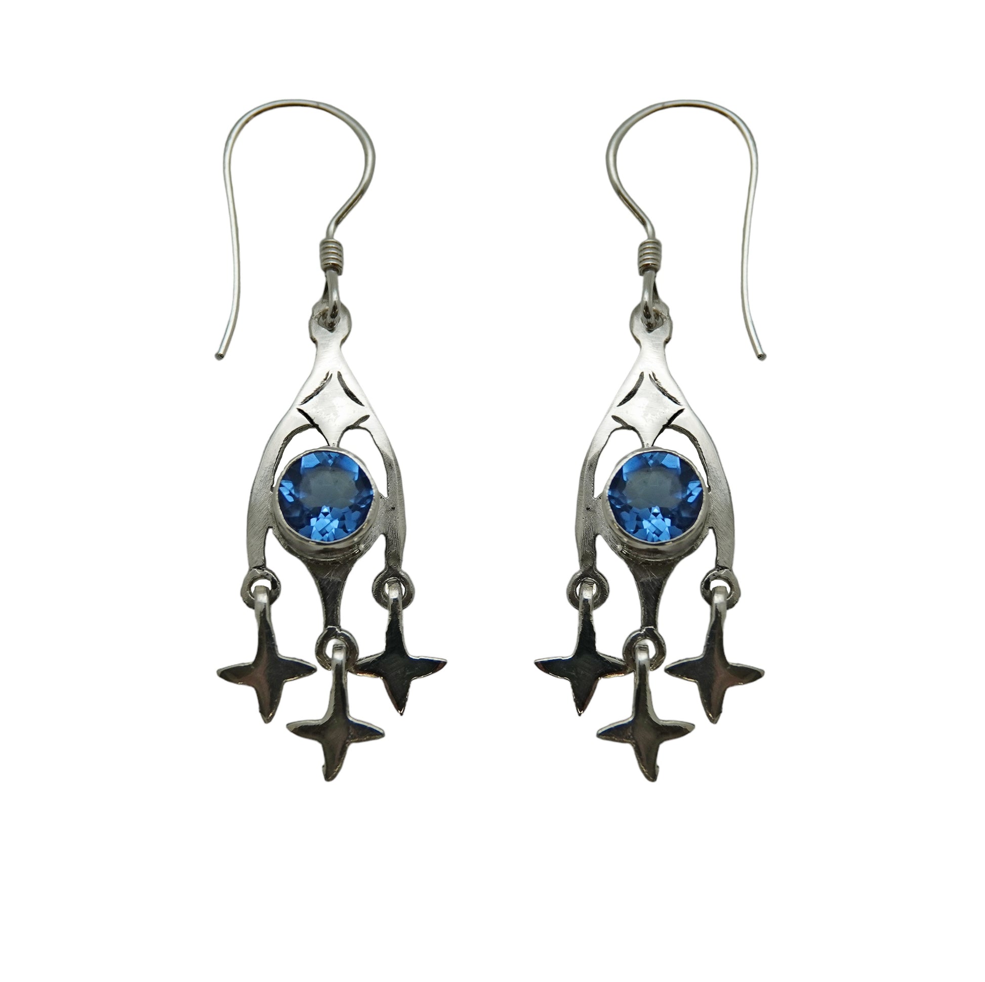 A little taste of heaven in this celestial earring design, with stars swaying to and fro beneath a gemstone orb measuring 6mm. Big enough to be noticed but so lightweight you'll hardly know you have them on. Featured here in faceted blue quartz.