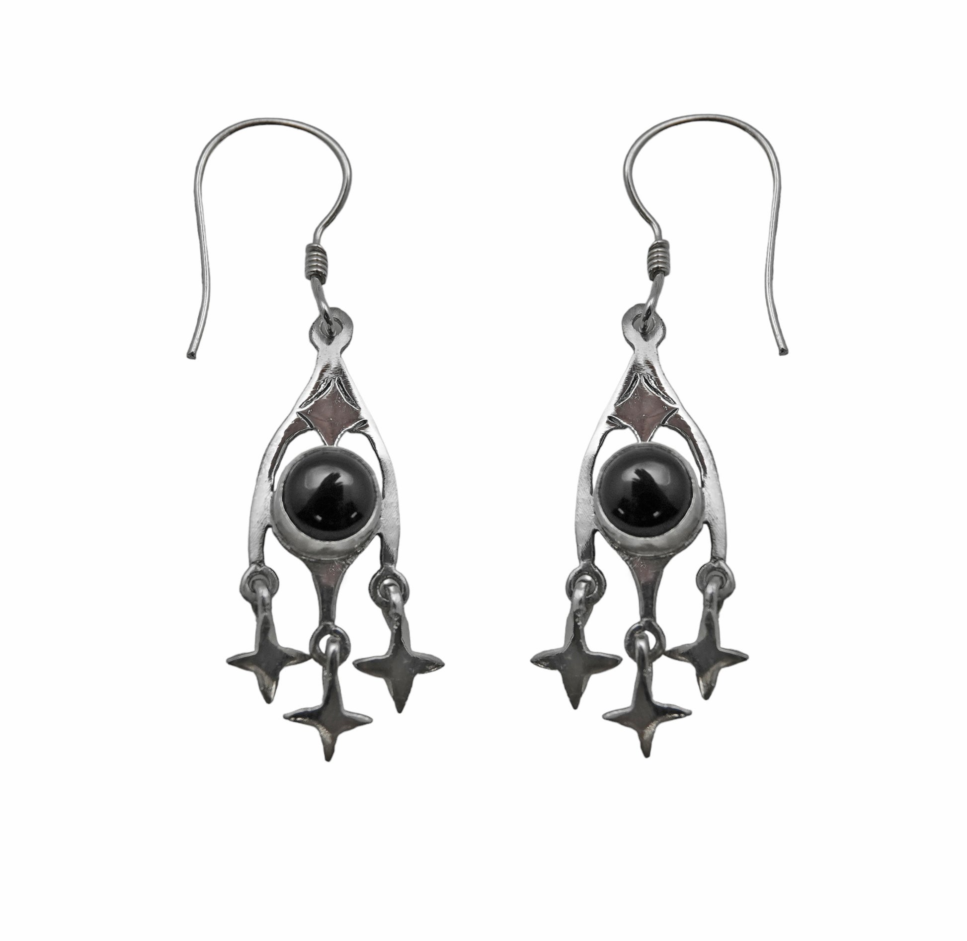 A little taste of heaven in this celestial earring design, with stars swaying to and fro beneath a black onyx orb measuring 6mm. Big enough to be noticed but so lightweight you'll hardly know you have them on.