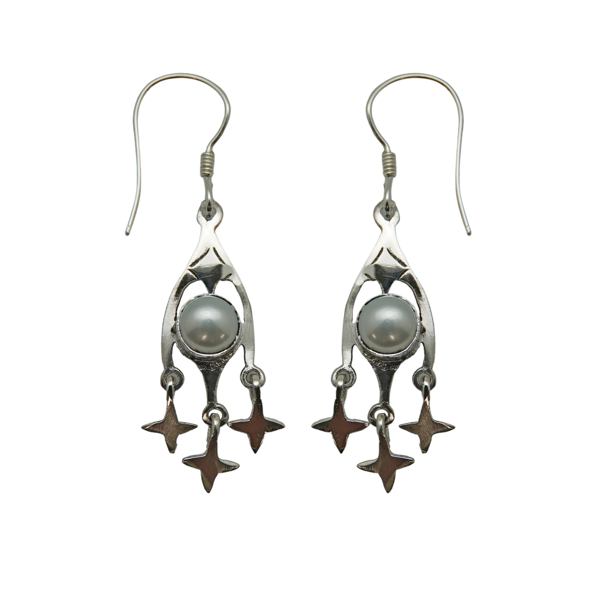 A little taste of heaven in this celestial earring design, with stars swaying to and fro beneath a freshwater pearl measuring 6mm. Big enough to be noticed but so lightweight you'll hardly know you have them on.