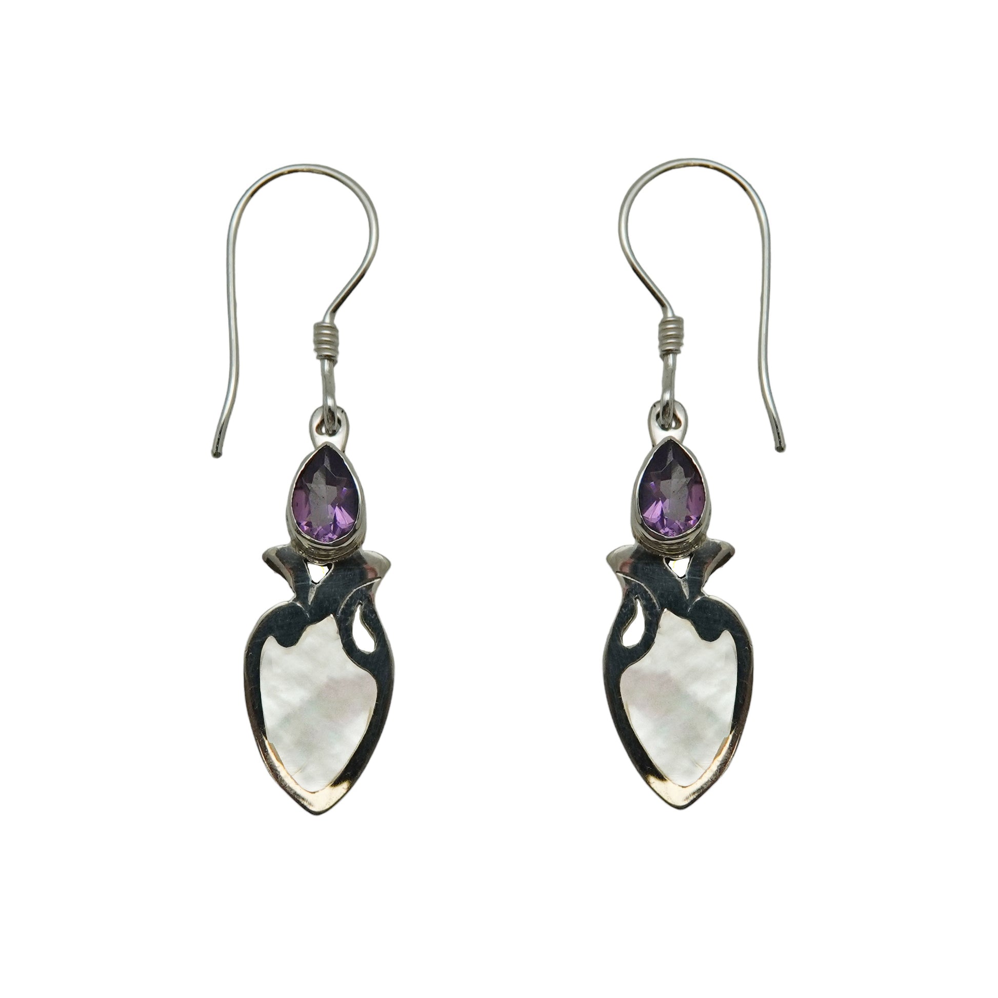 (396BAMMOP) Drop earring with Amethyst and natural shell