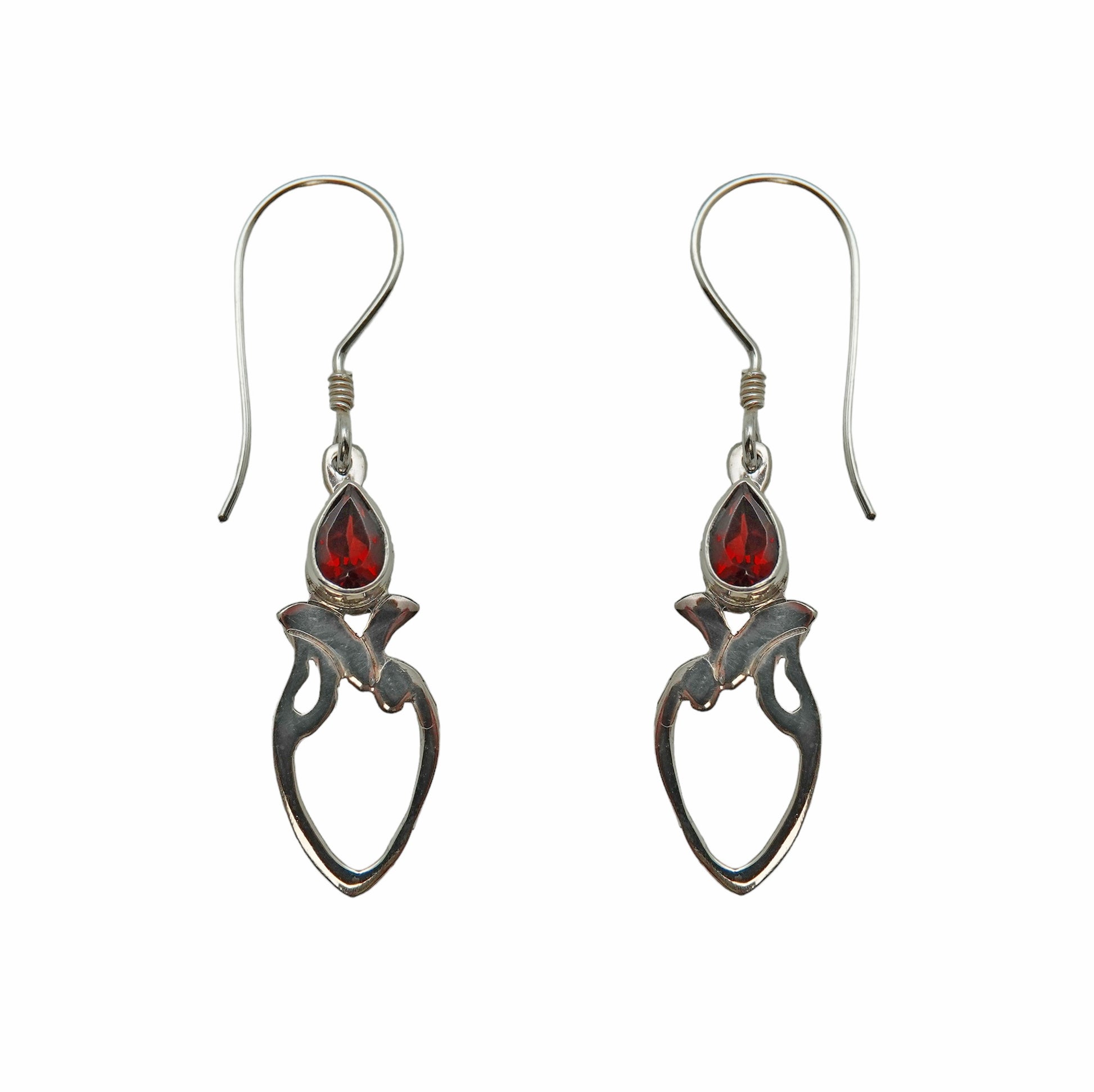 (396BGA) Garnet Open Leaf Earrings