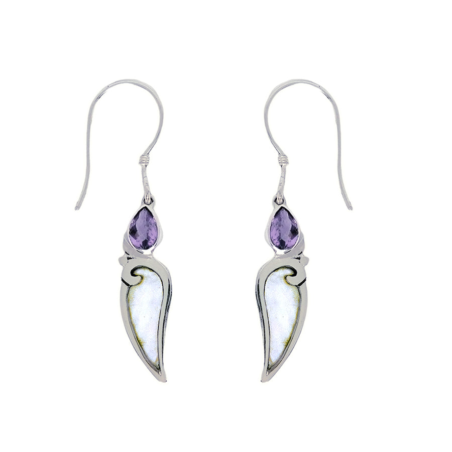 (346AAMMOP) Amethyst & Mother Of Pearl Silver Earrings
