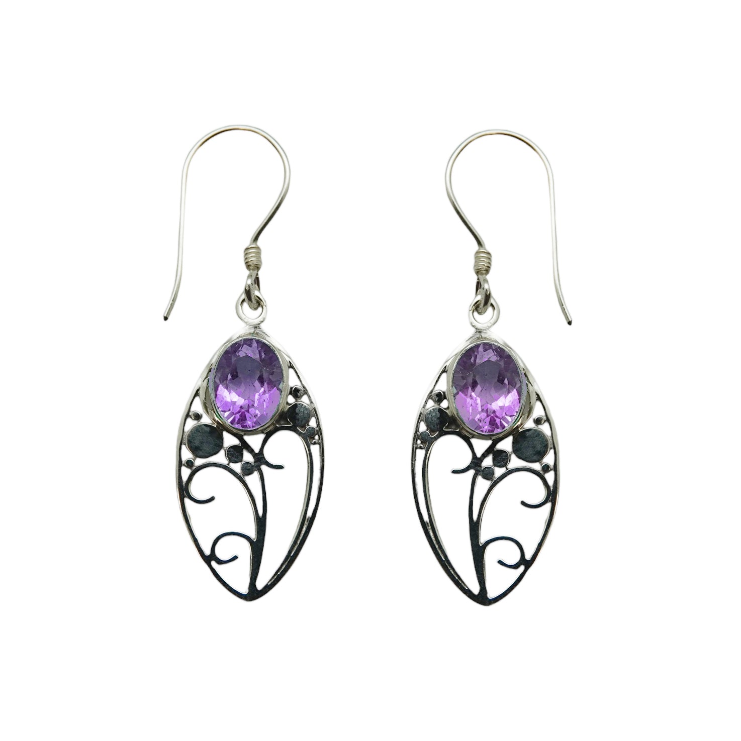 (258UAM) Amethyst Silver Oval Earring