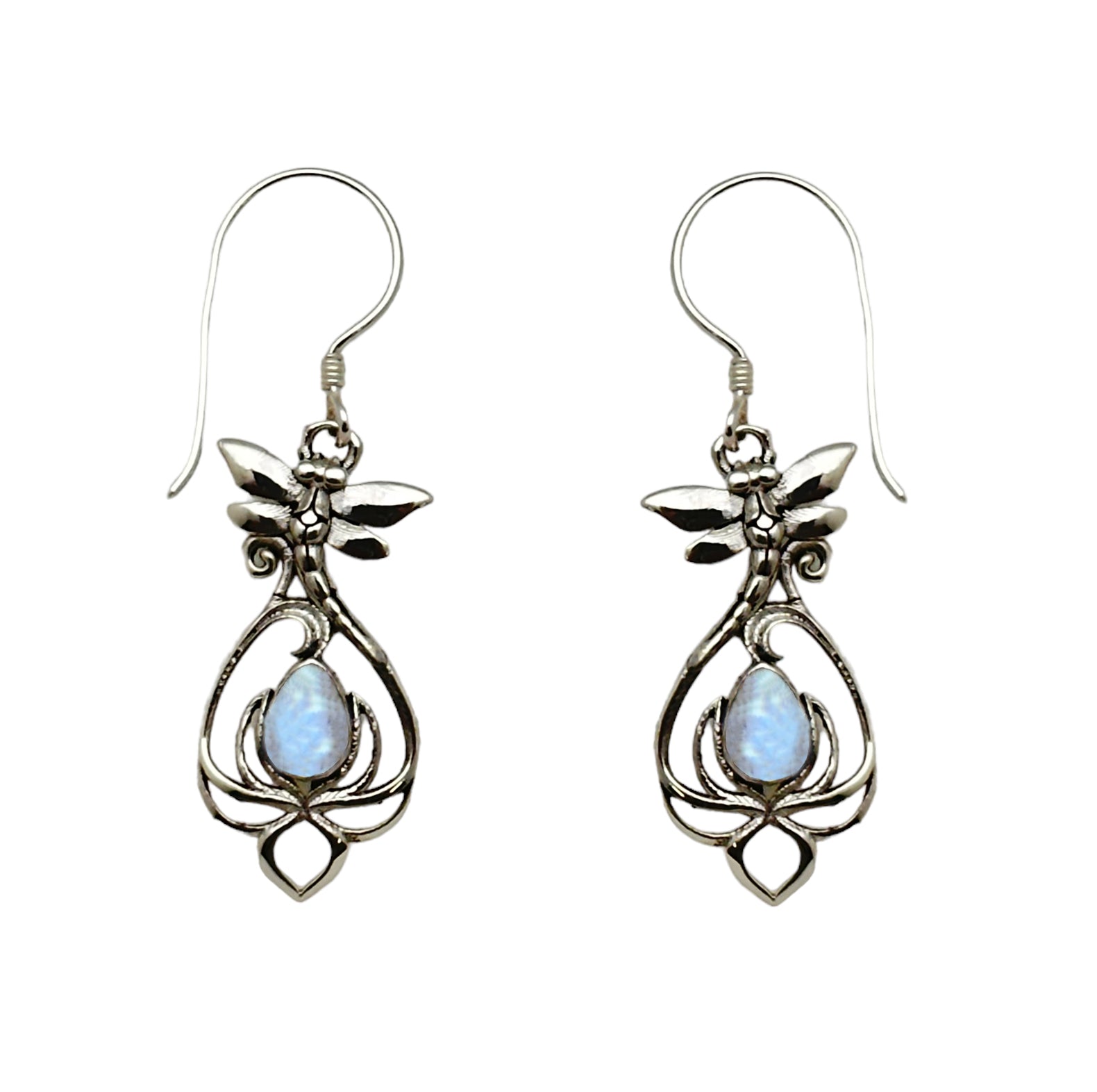 (312BBMS) Blue Moonstone Silver Dragonfly Earrings
