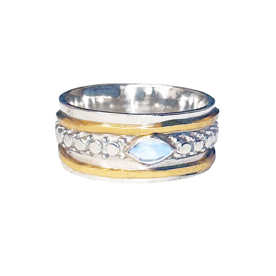 (787CBMS) Blue Moonstone Marquis Silver Spinner Ring (787CBMS)
