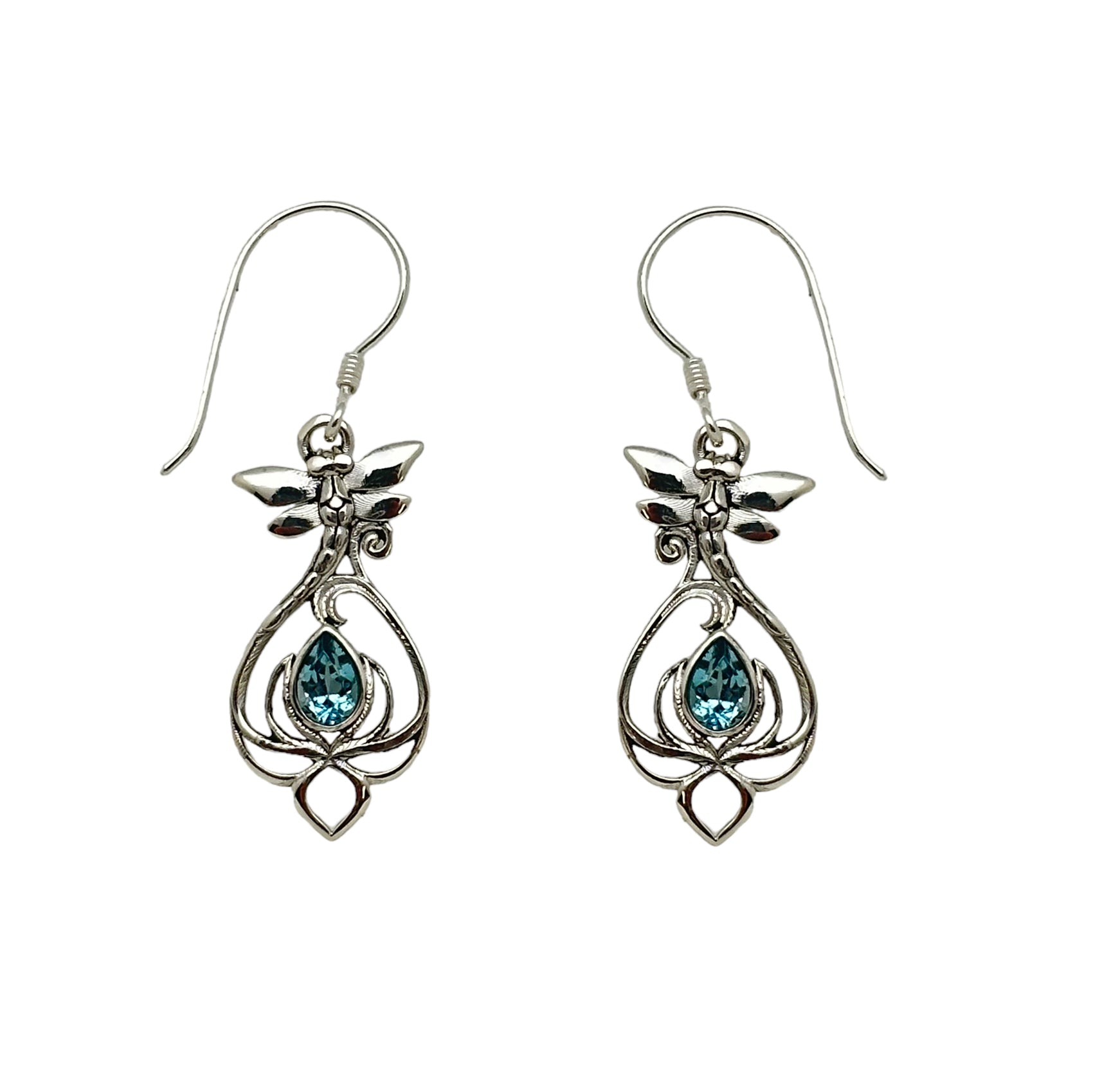 (312BBT) Blue Topaz Silver Dragonfly Earrings