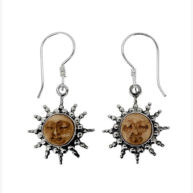 (330ABFT) Bone Carved Tea-stained Sun Face Earrings