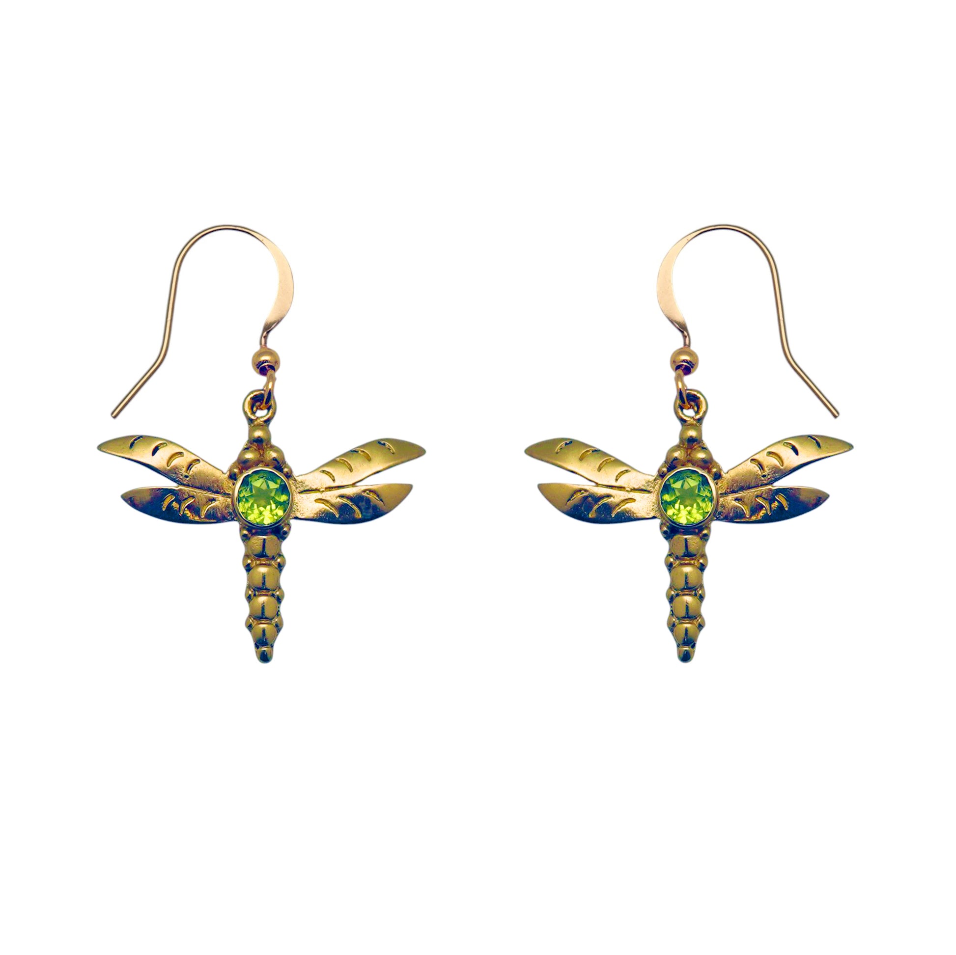 (BR251RPE) Gemstone Dragonfly earring in gold tone