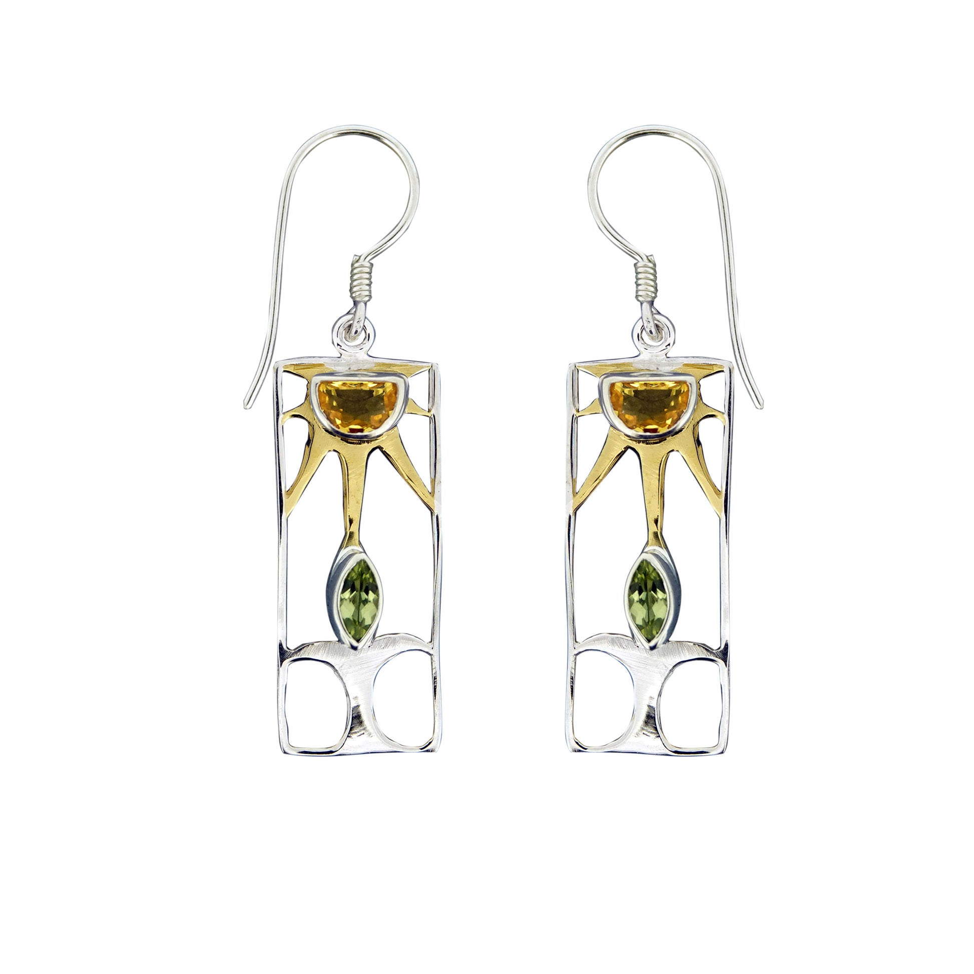 (389CIPE) Citrine & Peridot Silver Earrings