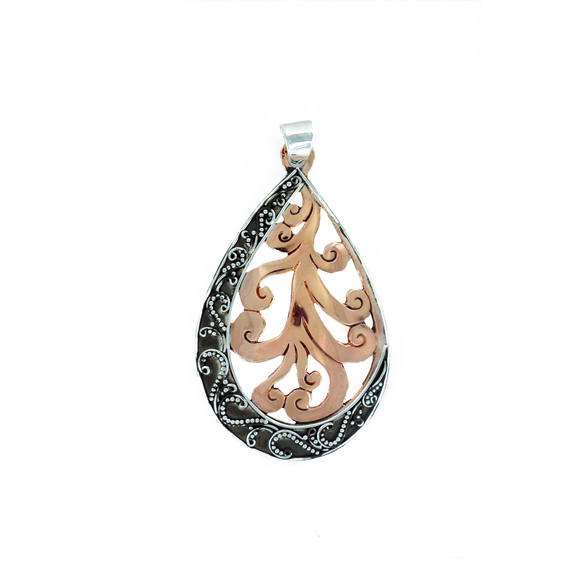 Copper Silver Teardrop Pendant With Cutouts And Granulation