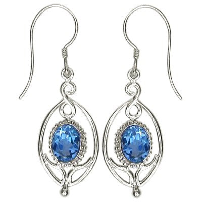 Sterling Silver Flower Drop Blue Topaz Earrings