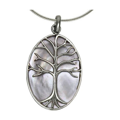 Sterling Silver Mother of Pearl Shell Tree of Life Pendant