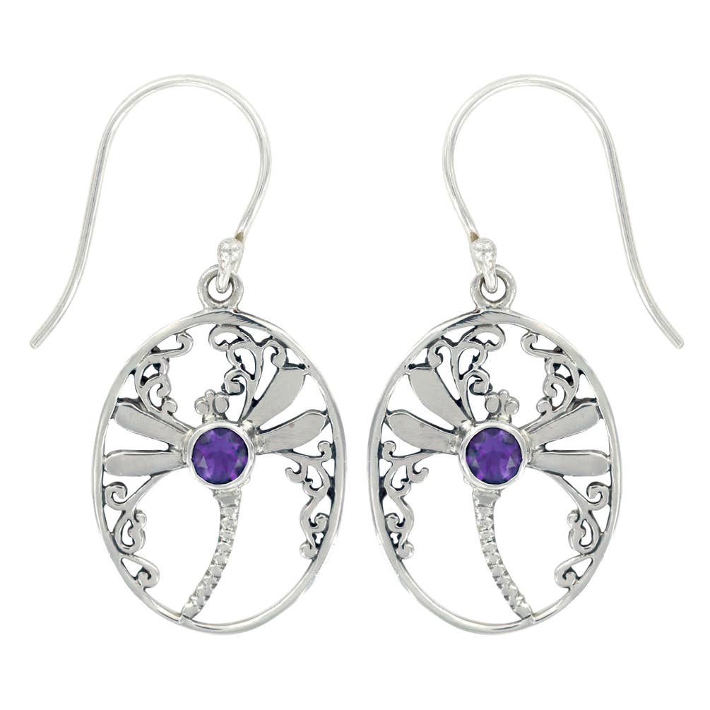 (268XAM) Oval Dragonfly Earring With Amethyst Stone (268XAM)