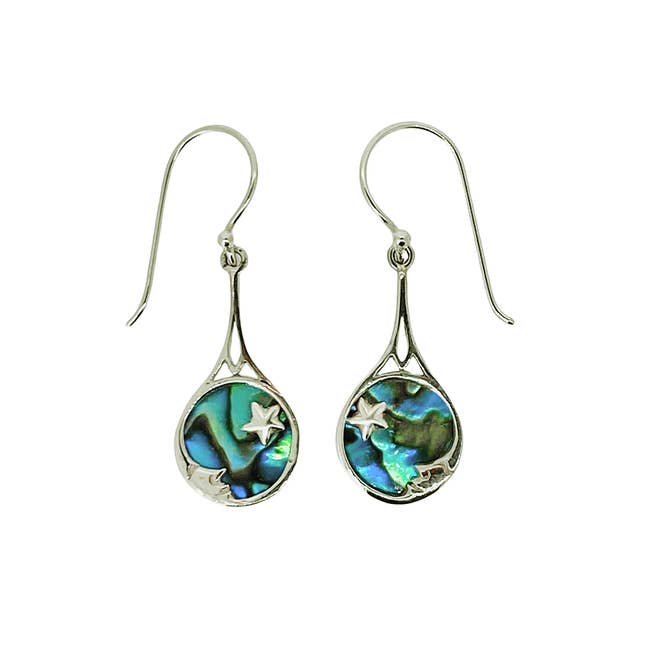 (274XPAUA) Paua Sterling Silver Moon/Star Earrings