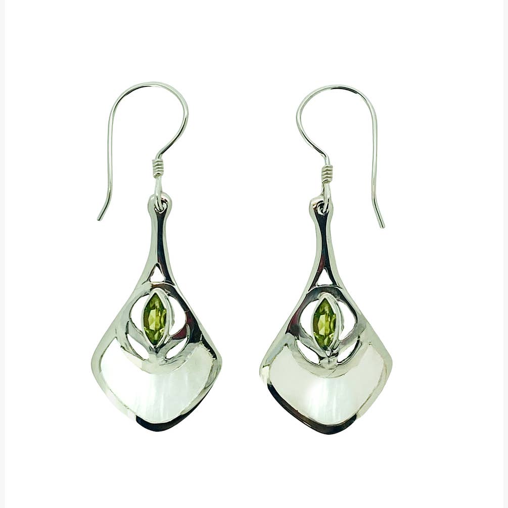 Peridot & Mother Of Pearl Inlay Silver Earrings