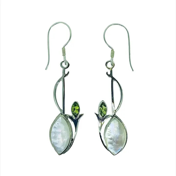 Peridot & Mother Of Pearl Silver Earrings