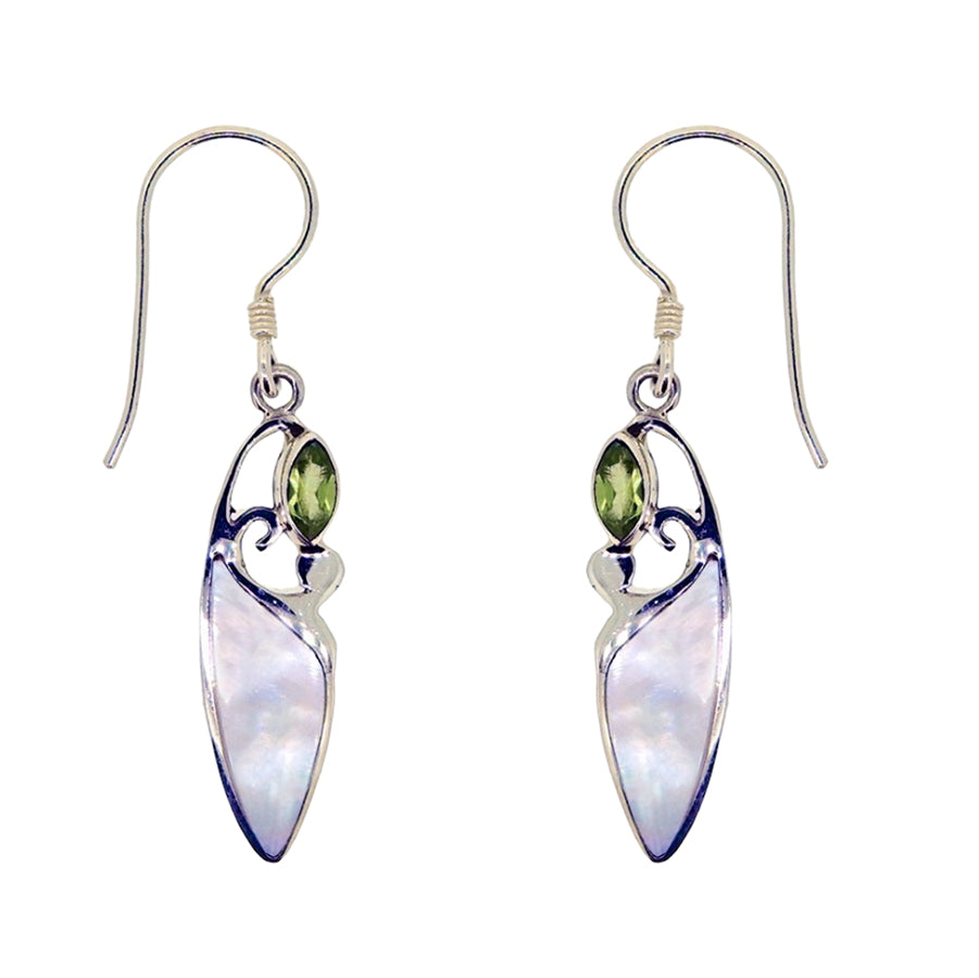 (331APEMOP) Peridot & Mother Of Pearl Silver Drop Earrings