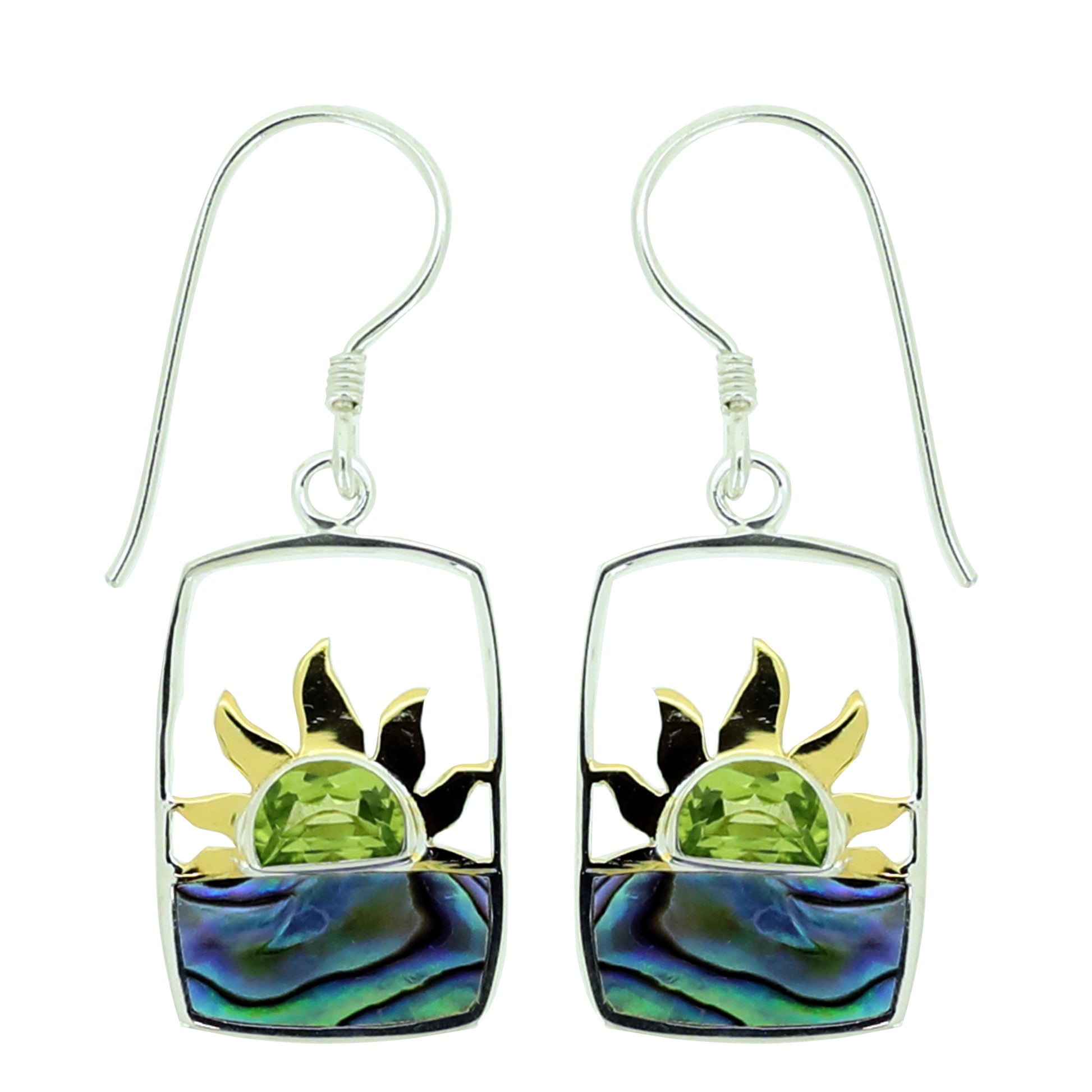 (251PPEPAUA) Peridot & Paua (Abalone) Shell Sunrise/Sunset Horizon Earrings