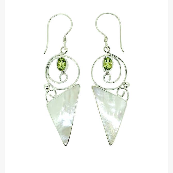 Peridot with Triangle Mother Of Pearl Earrings
