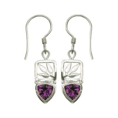 Sterling Silver Small Amethyst Bamboo Leaf Drop Earrings