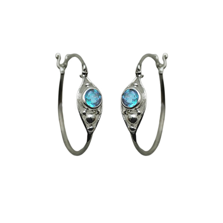 (SP110BT) Silver-plate Blue Topaz Hoops
