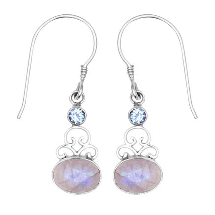 Swiss Blue Topaz Blue Moonstone Silver Earring