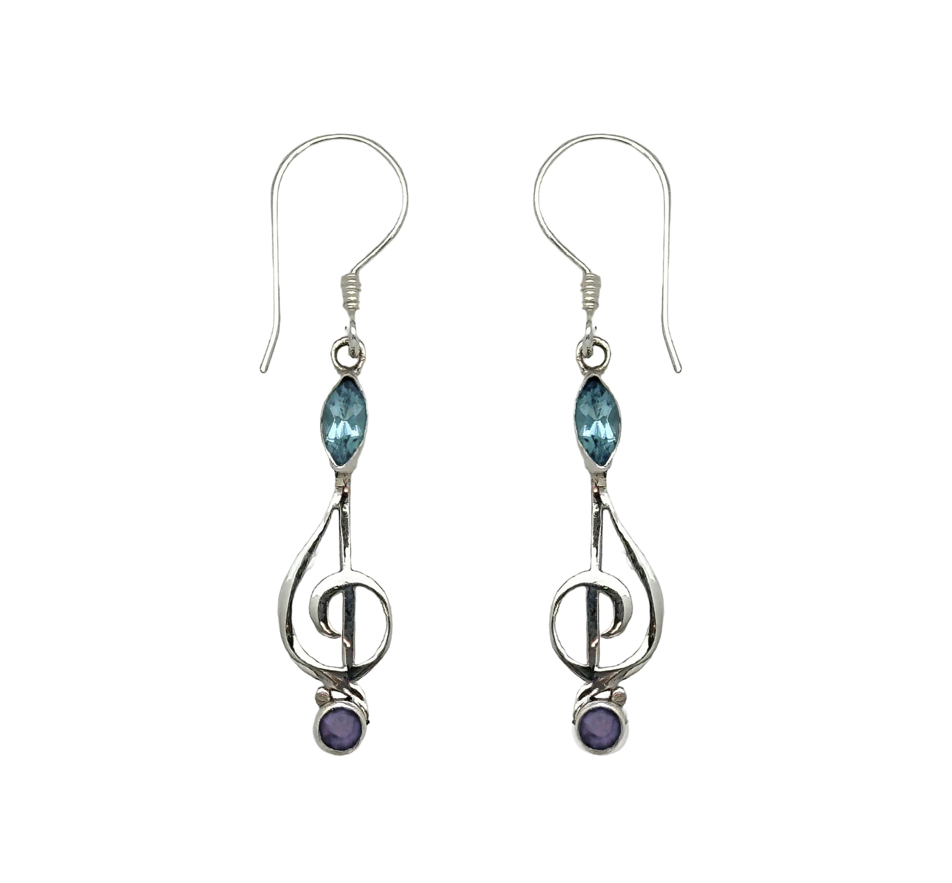 (338BBTAM) Swiss blue topaz earring with amethyst, G clef