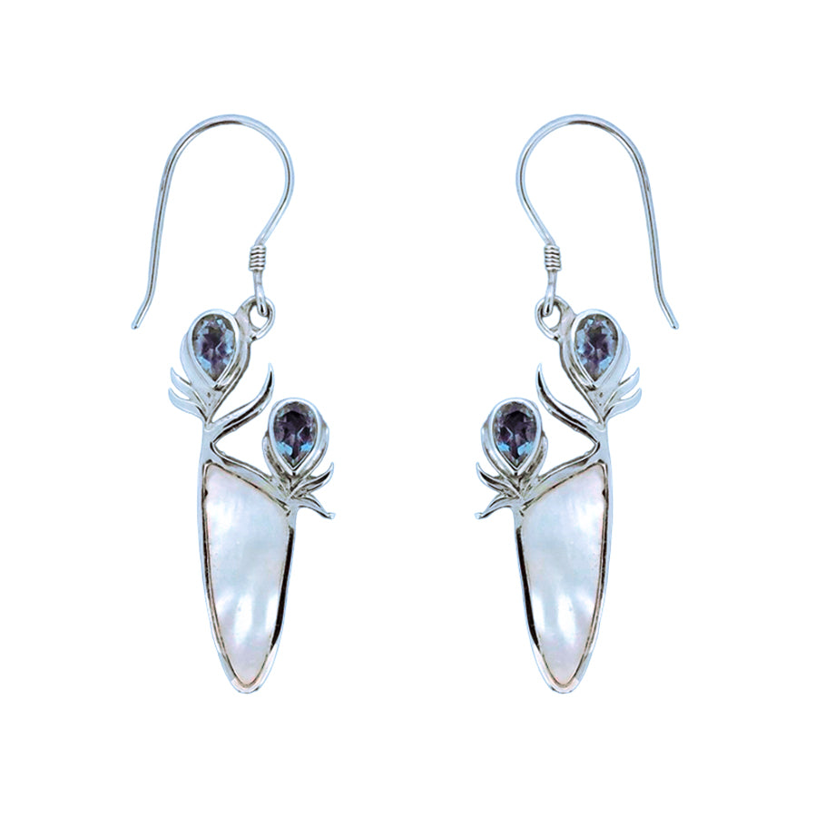 Swiss Blue Topaz & Mother Of Pearl Silver Earrings