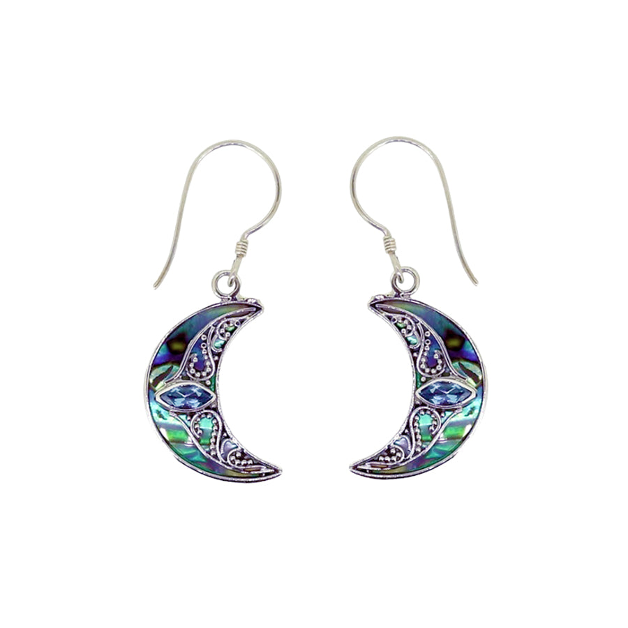 Swiss Blue Topaz & Paua Crescent Moon Sterling Silver Earrings