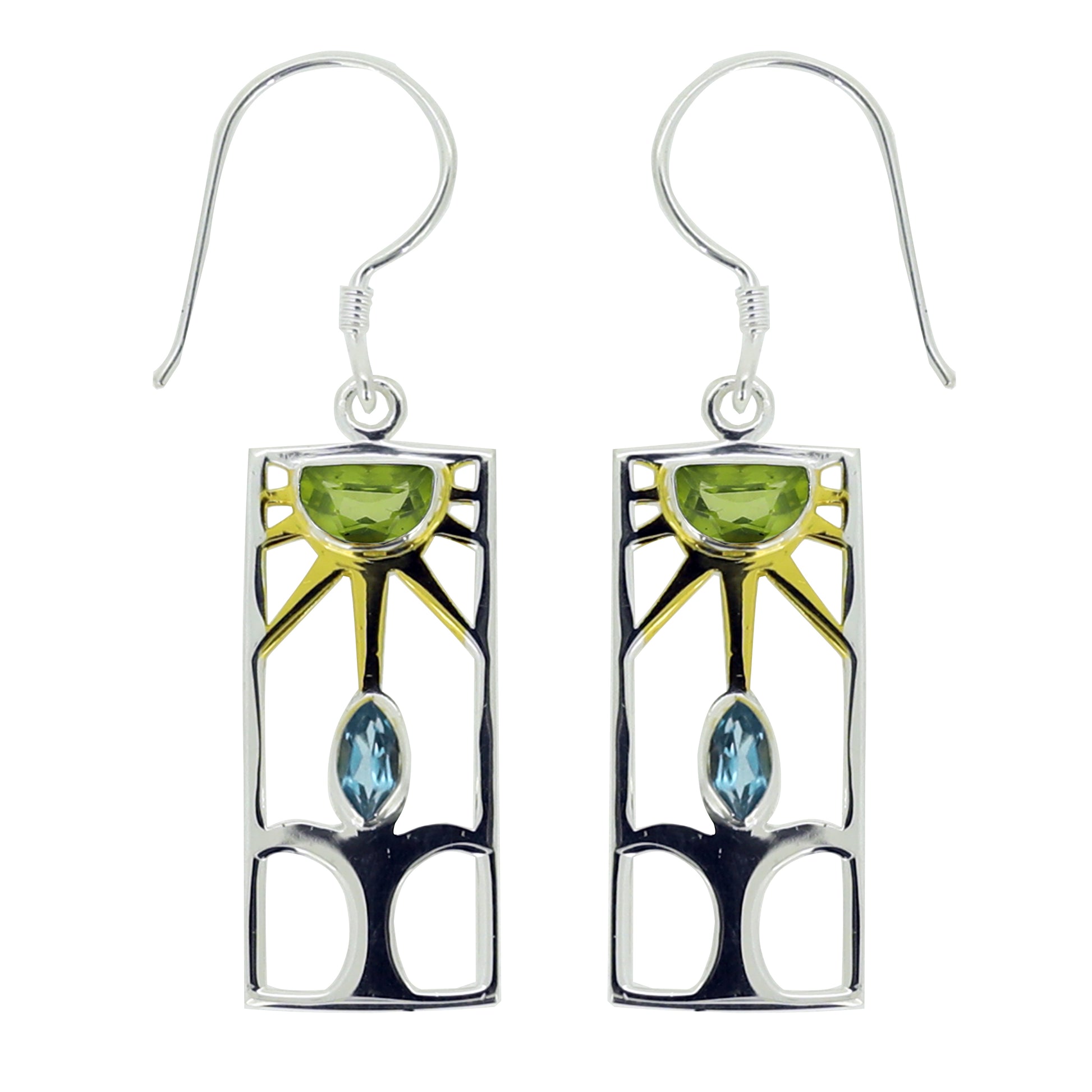 Peridot Sun Silver over Blue Topaz Flower Earrings