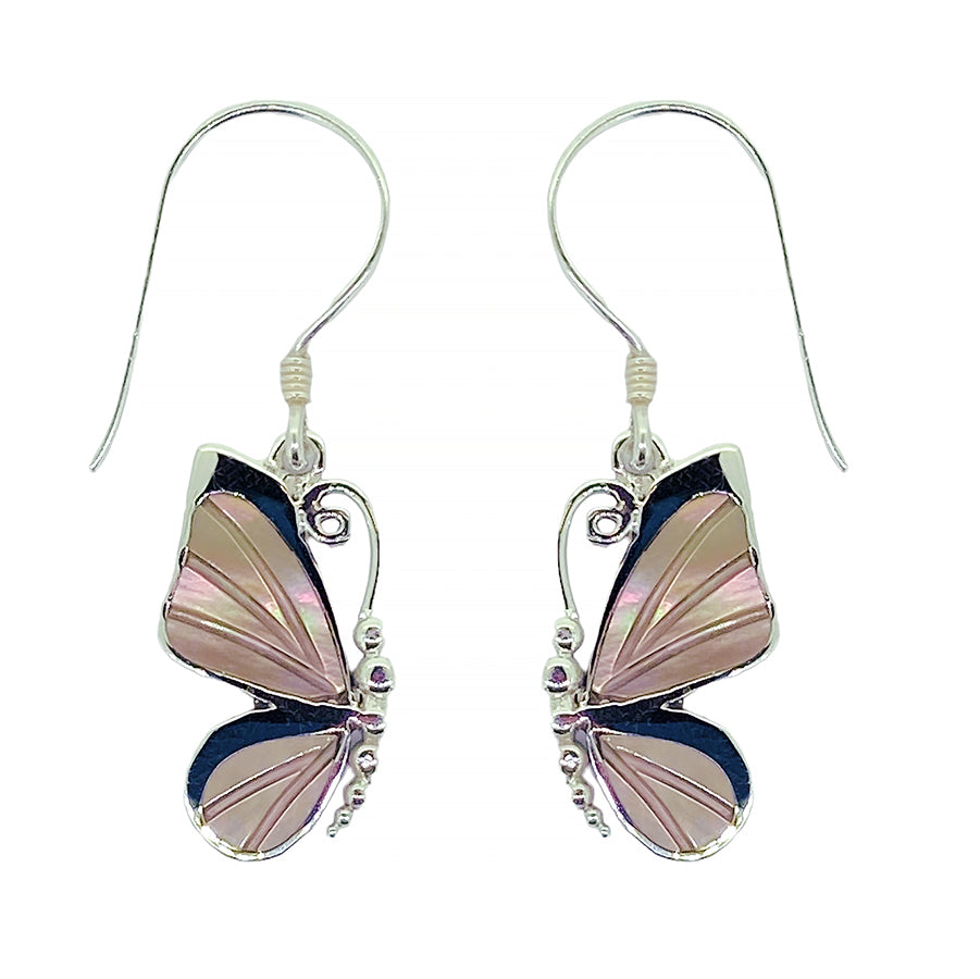 Tan Mother Of Pearl Shell Silver Earrings