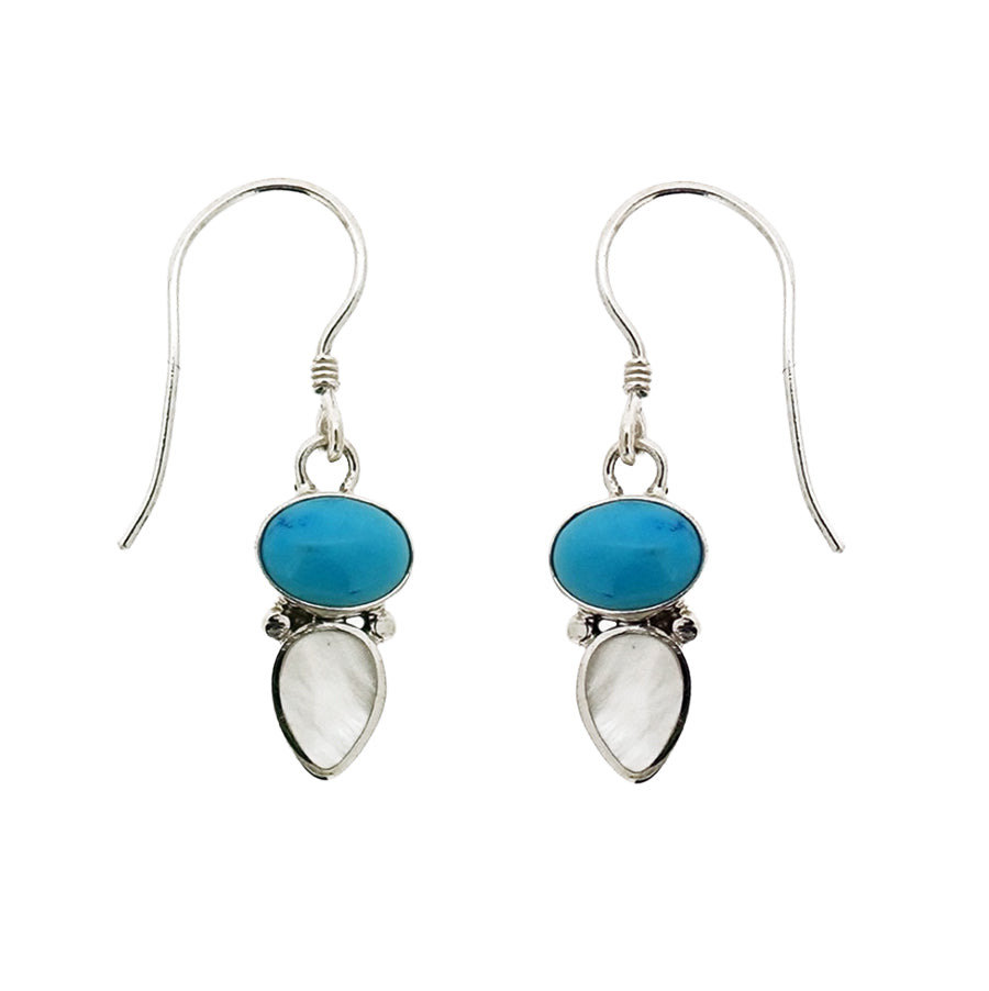(333ATQMOP) Turquoise & Mother Of Pearl Silver Earrings